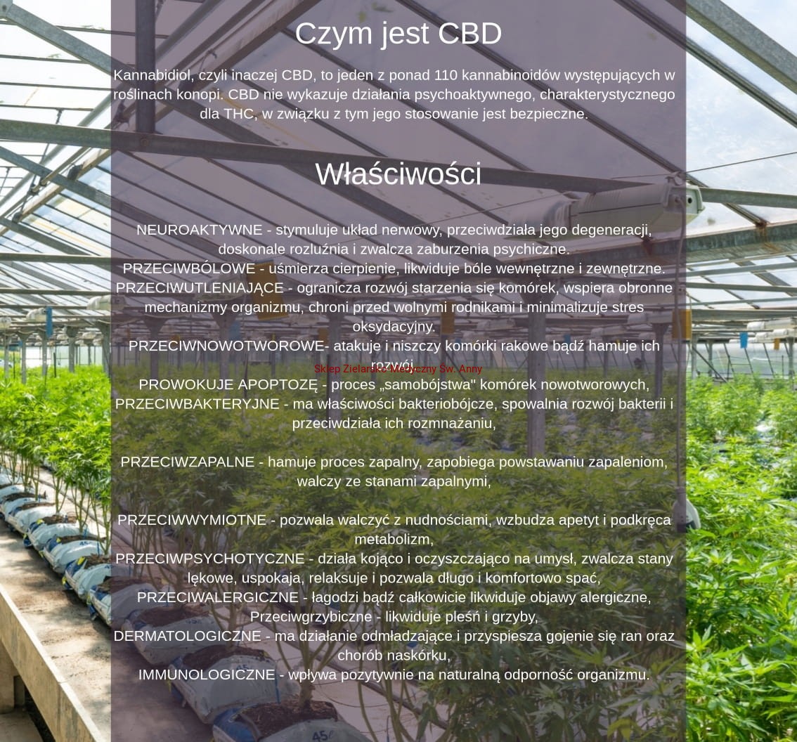 - Kannabidiol, czyli inaczej CBD, to jeden z ponad 110 kannabinoidów występujących w roślinach konopi.